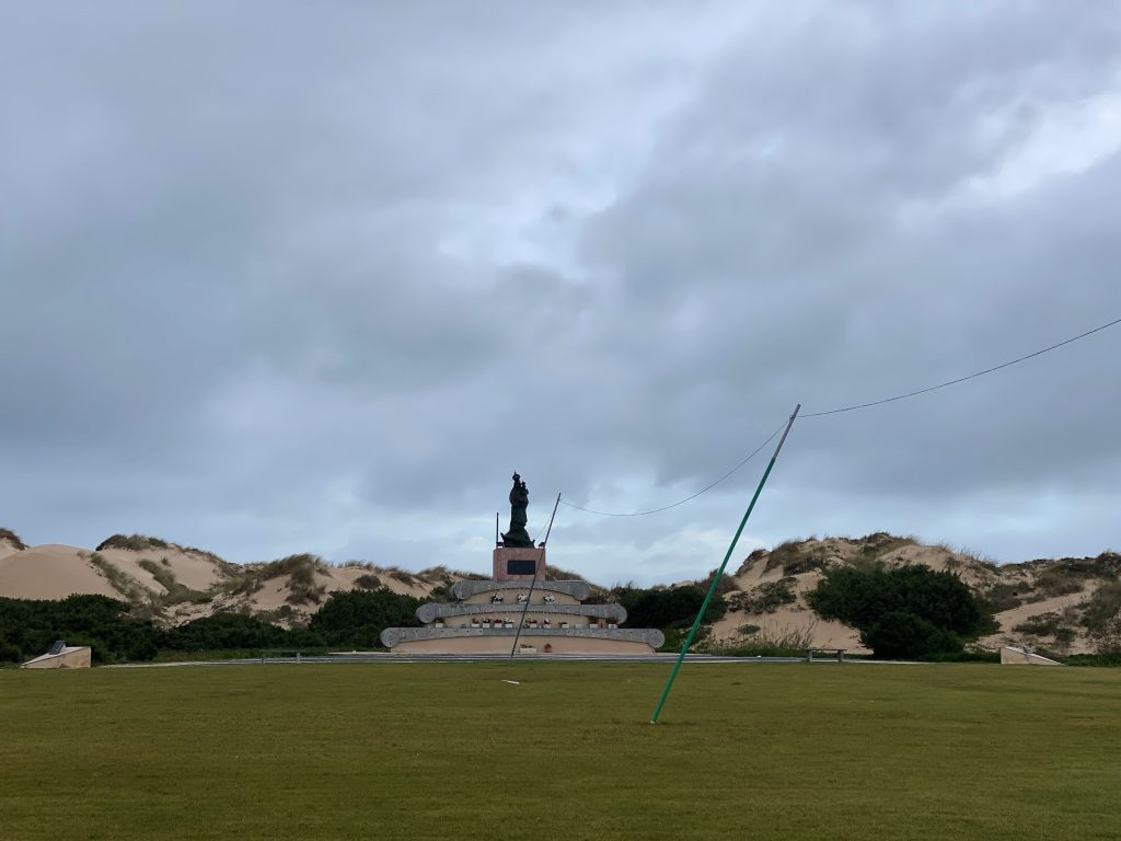 I walk in the dunes parallel to the beach, where I hear the noises of the sea. It is heavy trail, going up and down on the sand. The beach is called Baleal, and I choose to go to Ferrel, through town. I don’t go to the little peninsula of Baleal. There is a lot of water, so the top would be flooded, I heard in the hostel and I need to move on. I need to go to the direction of Golf park Bom Sucesso.  Quite hard to find this path. I also walk though a terrain with huge villas. I need to go out of this closed part first, to find a normal street. When I finally jump over a wall, I am on the street that would lead me to Bom Sucesso.