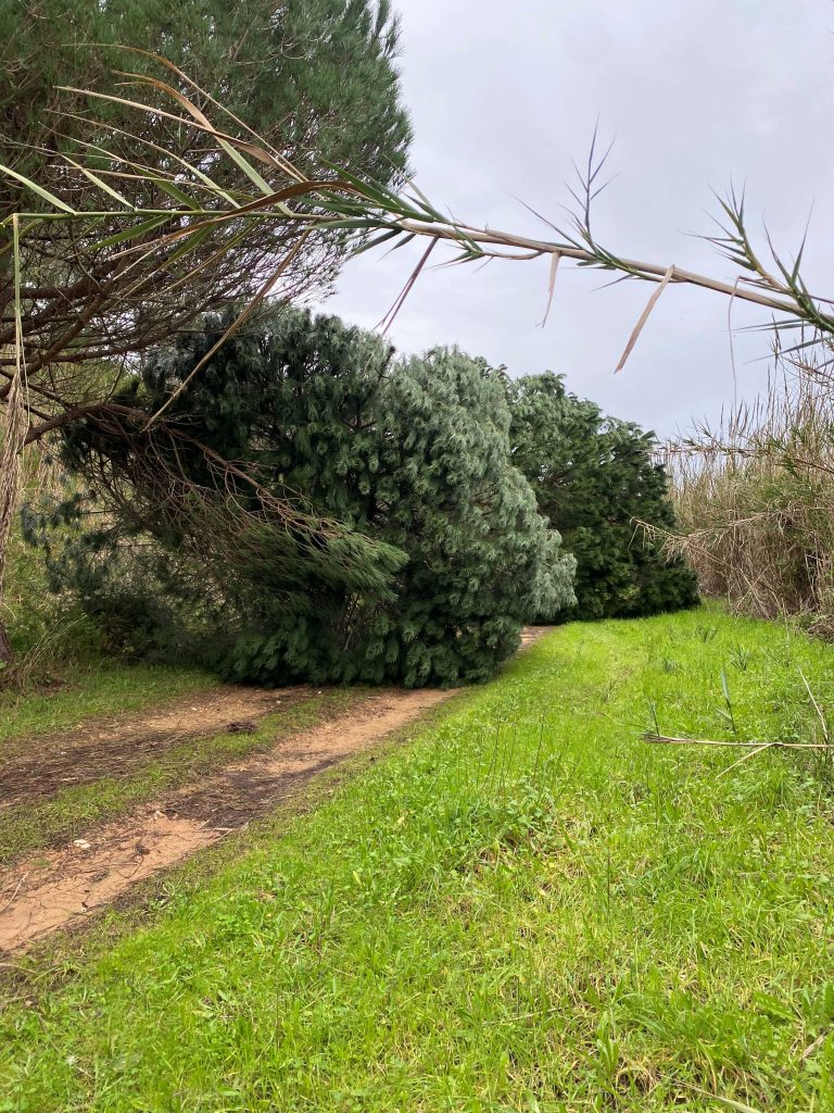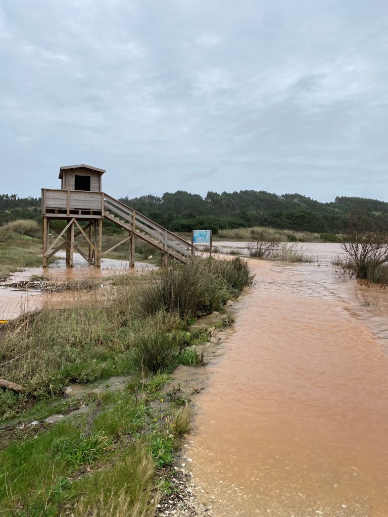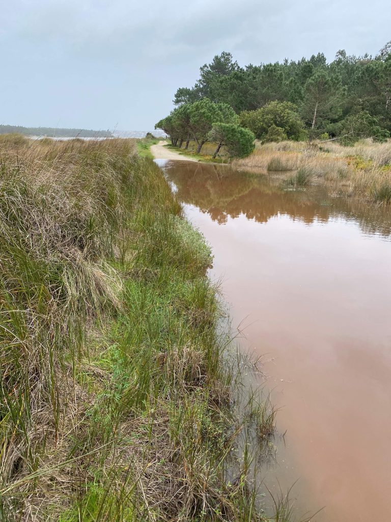 Day 2 was a dry day. My feet however didn’t stay dry. It was heavy because todays path is more than 30 km but also because it was flooded on several paths, fallen trees on the street and not a lot of people. Scary to see that there is just no road anymore. Uncertainty made me very uncomfortable. I enjoyed most of the day until I got stuck at bottom of Lagos Obidos, around three. Then I walked very hard to leave the place while it was still light. And the last part with soaked socks and shoes were not so enjoyable anymore.