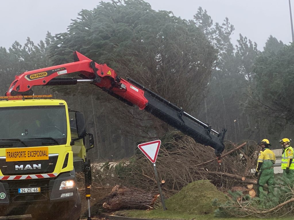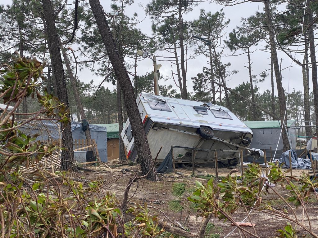 This part to Nazare I will walk on the road again. I try once to go for a walk in the dunes, but first I had the wrong path, and the good one was so wet that I didn’t even look like at that path at all. It’s so slippery that I walk all the way back to the road. I leave Praia Salgado behind me and after a while I have to go all around some rivers and the harbour. Very difficult because it is steep, and on the road with cars. Quite a lot of cars here. Finally, I reach the harbour, where I already see the first signs of damage. I eventually I walk on private property of the harbour, the fences are blown away and couldn’t pass them on the small pavement but I could get into the harbour.