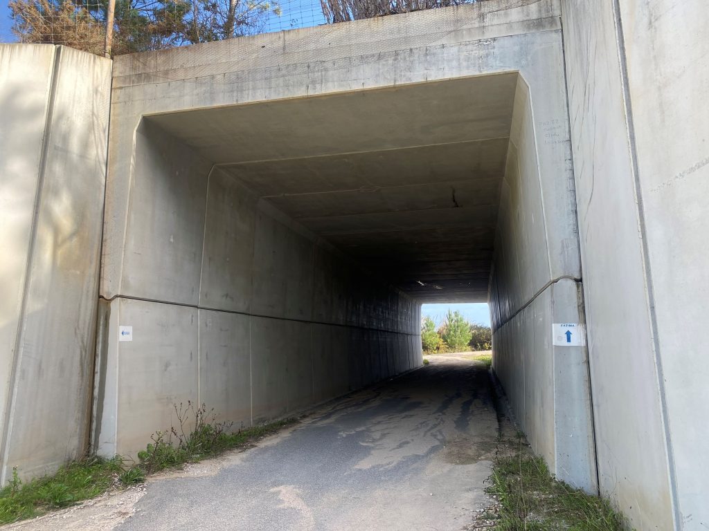 I am paying attention because I like to follow the blue arrows to Fatima but I don’t see them leaving Nazaré. Very strangely, after 2 hours walking in the forest, almost in Valado dos Frados I finally see them! But they also disappeared quickly. All is stated on the Fatima website, the route, the villages but unfortunately no arrows. Very odd.