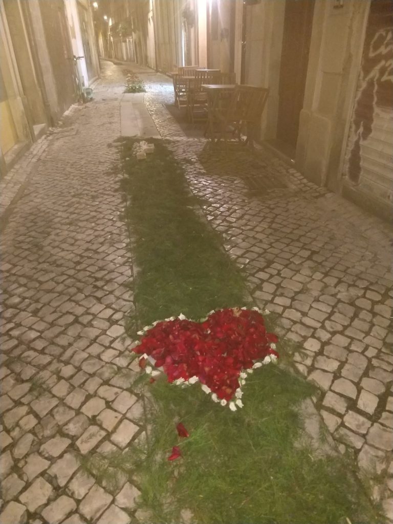 25 April is a big day here in Portugal. There is flower art on the floor and it stays like this for a ouple of days!
