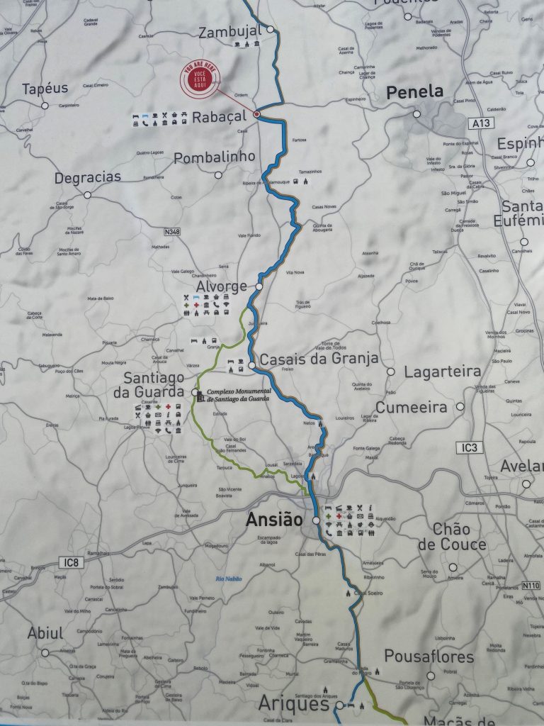 This is the map from the Fatima route, where Casa da Lima is located (from Rabacal 3 km further down). As you can see the route makes a loop into the nice village Rabacal. Here they have the D.O.P. cheeses. If you don’t like to pass this town, and you don’t need a minimercado, restaurant, or cafe, you can just cross the road and walk straight. You will arrive half hour earlier at Casa da Lima!